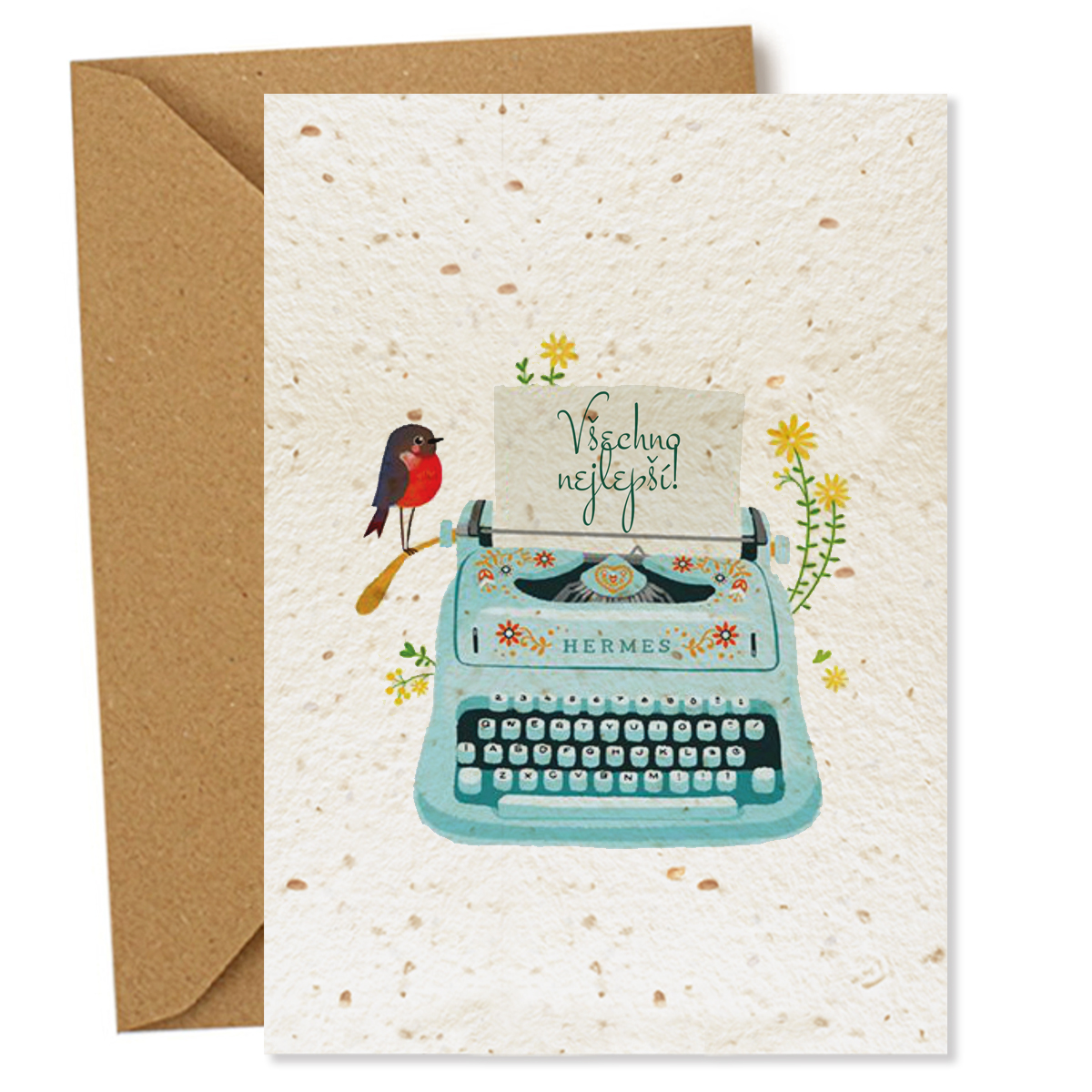 • Bonus pro vás: Ke každému přání přikládáme stylovou pečeticí samolepku na zadní stranu obálky. Ta novomanžele hned upozorní, že v rukou drží výjimečný papír se semínky, který stačí zasadit a nechat rozkvést.