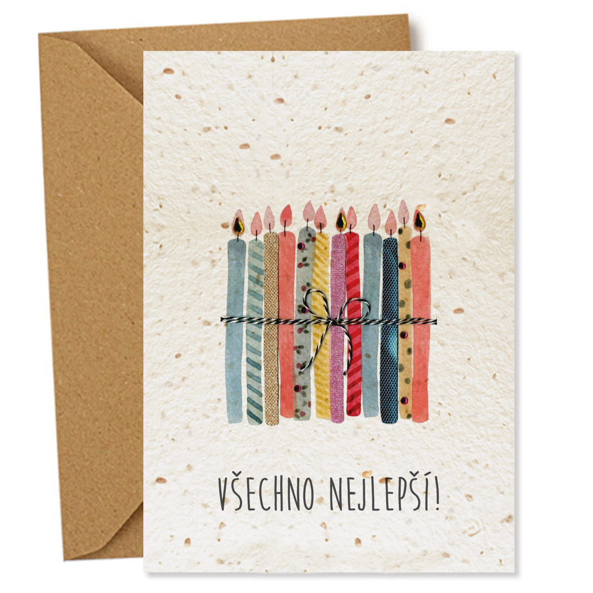 • Bonus pro vás: Ke každému přání přikládáme stylovou pečeticí samolepku na zadní stranu obálky. Ta obdarovaného hned upozorní, že v rukou drží výjimečný papír se semínky, který stačí zasadit a nechat rozkvést.
