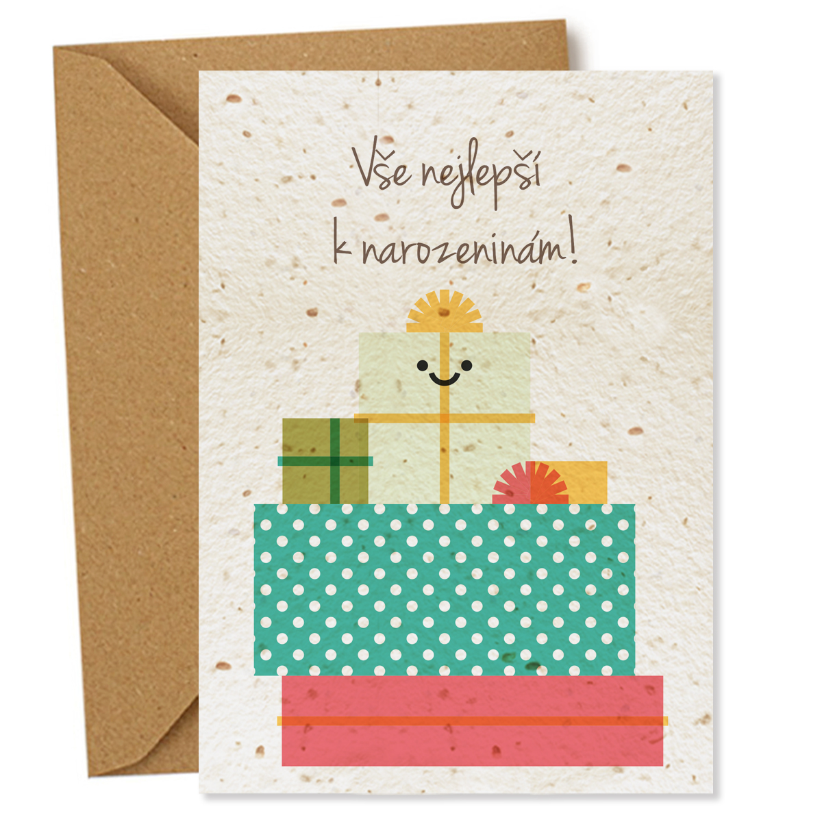 • Bonus pro vás: Ke každému přání přikládáme stylovou pečeticí samolepku na zadní stranu obálky. Ta obdarovaného hned upozorní, že v rukou drží výjimečný papír se semínky, který stačí zasadit a nechat rozkvést.